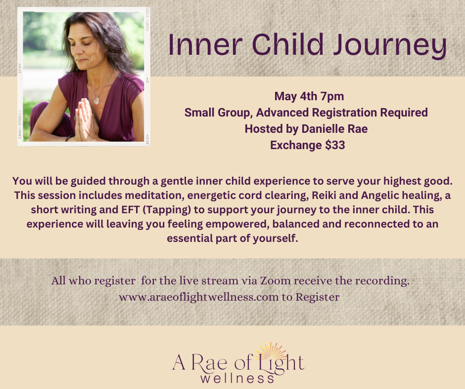 You will be guided through a gentle inner child experience to serve your highest good. This session includes meditation, energetic cord clearing, Reiki and Angelic healing, a short writing and EFT (Tapping) to support your journey to the inner child. This experience will leaving you feeling empowered, balanced and reconnected to an essential part of yourself.